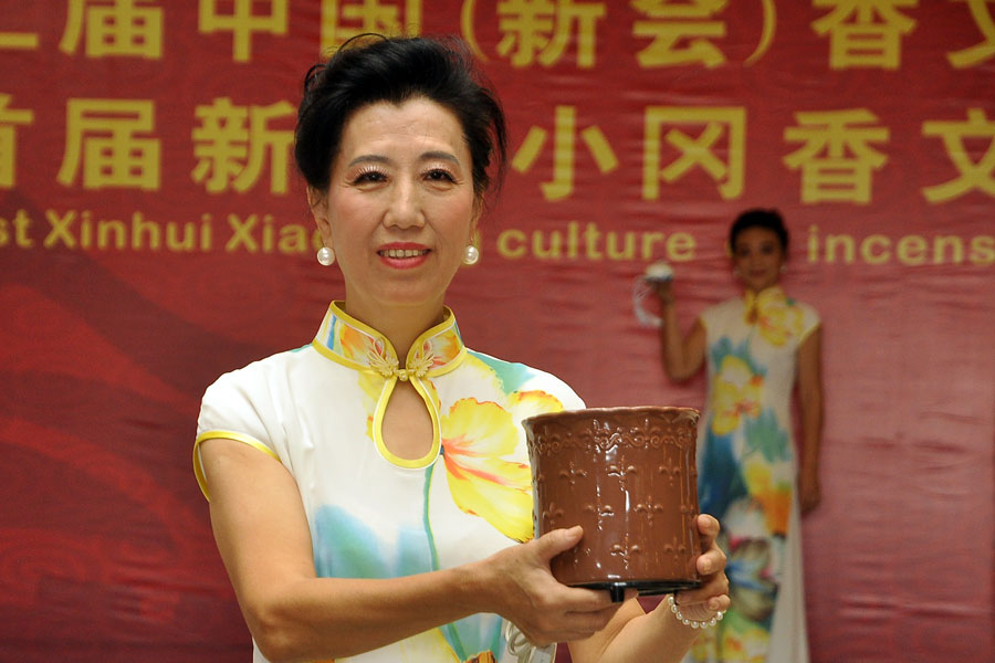 給外商介紹“玉蘭香”陶瓷品香器