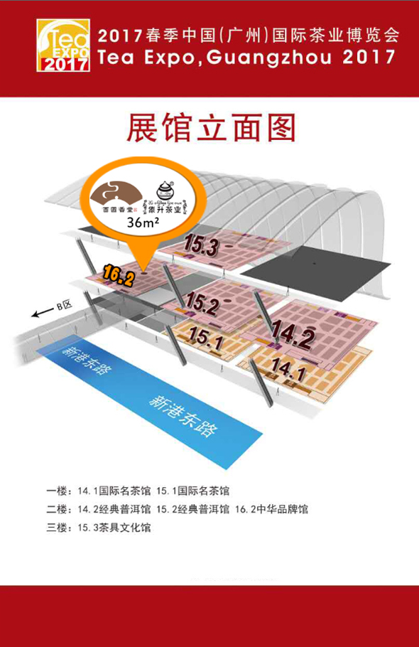 酉圓香堂與傣升茶業組團參加2017年春季中國(廣州)國際茶業博覽會,我司展館在廣交會展館C區二樓的中華品牌館(16.2館),展位號A2103。