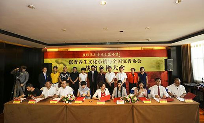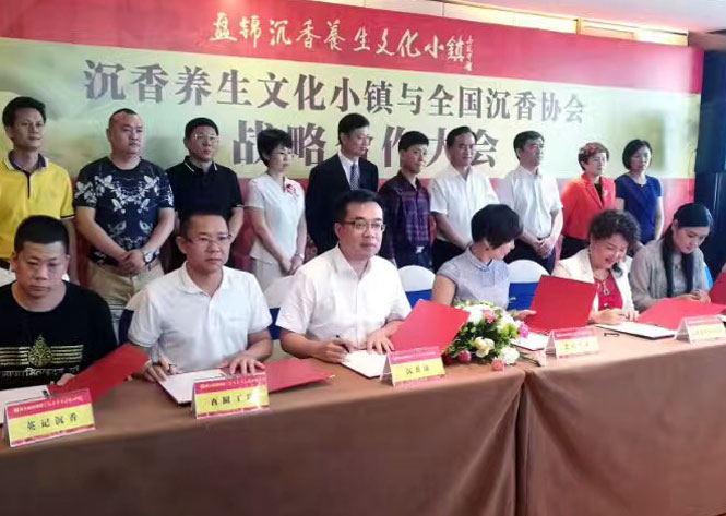 世中聯沉香國際聯盟、廣東省香業協會、深圳市沉香行業協會、深圳市棋楠沉香收藏協會、汕頭市沉香協會、中國沉香研究會、惠州市沉香協會、電白區沉香協會等行業協會和沉香之美、美伊伽楠、婷婷沉香、老山香業、沉香坊、酉圓工坊、英記沉香、汪氏沉香等企業與沉香養生文化小鎮簽訂合作協議。中國沉香文化博物館館長鄭鵬建,深圳市沉香協會會長蘇六河,世界中醫藥學會聯合會沉香國際聯盟常務副理事長汪科元,廣東省香業協會常務副會長兼秘書長陳燦輝,惠州市沉香協會會長林建環,汕頭市沉香收藏協會會長李國群,中國沉香研究會秘書長錢國富被聘為沉香養生文化小鎮顧問。廣東省香業協會、深圳市沉香行業協會在沉香養生文化小鎮設立盤錦辦事處,通過南香北引,加速沉香產業集群的形成。