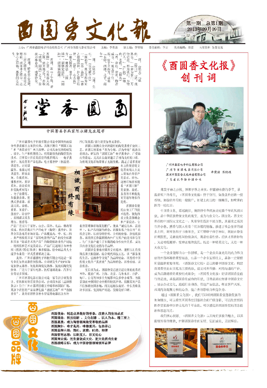 九月,是豐收的季節。經過幾個月來的精心籌備,國內首份由企業自主創辦的香文化類報刊《酉圓香文化報》終于正式發行了。在此,感謝公司領導、各位同事以及業界友人的關心、支持和鼓勵。