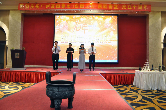 2016年5月25日晚廣州“富力空港假日酒店”二樓金殿宴會(huì)廳張燈結(jié)彩,我司在此隆重舉行慶祝十周年慶典晚宴及晚會(huì),出席慶典晚會(huì)的部分嘉賓包括東莞觀音寺主持法成大和尚、中國香學(xué)名家賈天明老師、當(dāng)代實(shí)力派書法藝術(shù)家程和華先生、(粵香協(xié))中國沉香學(xué)院教務(wù)主任陳建怡女士、老山香業(yè)董事長劉盛豐先生、鰲之沉香創(chuàng)始人陳鰲先生、奇楠閣香主袁冰女士、逸香庭創(chuàng)始人羅成杰先生、莞香緣創(chuàng)始人彭云賢先生、新會(huì)寶駿宗教用品城執(zhí)行董事兼總經(jīng)理戴瑜先生、惠州市新圓沉香發(fā)展股份有限公司董事兼總經(jīng)理林建環(huán)先生等。此外,特別鳴謝廣州市一豐香文化發(fā)展有限公司藝術(shù)團(tuán)(一豐雅樂)、雅之韻模特藝術(shù)團(tuán)、南北茶人、廣州出色·生活美學(xué)等單位對晚會(huì)的大力支持。