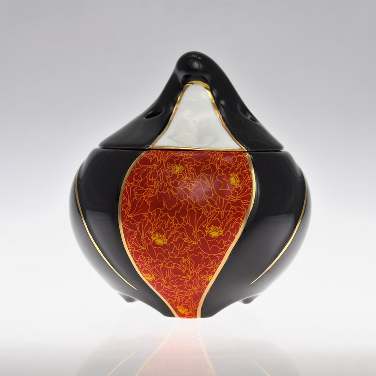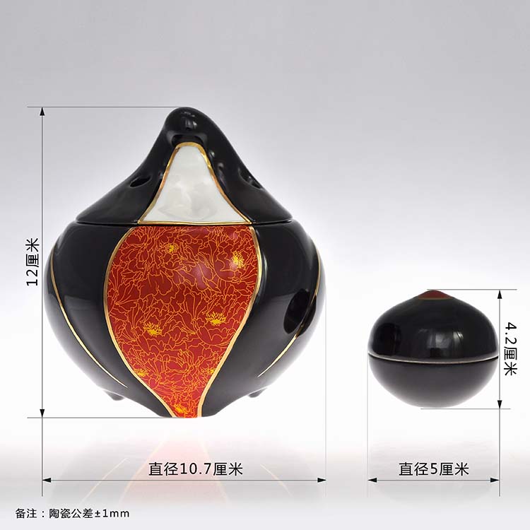 胖香妃,采用取象擬人的手法,白釉為膚,彩釉為裙,黑釉為衣。爐即是人,人即是爐,人爐合一,猶如莊周夢蝶,如夢如幻,如癡如醉。其精細陶瓷,來自千年瓷都景德鎮,結合傳統手工貼花和曲線描金工藝,經過高溫燒制而成。爐香裊裊,清凈心身。香來身無恙,香過心無痕。